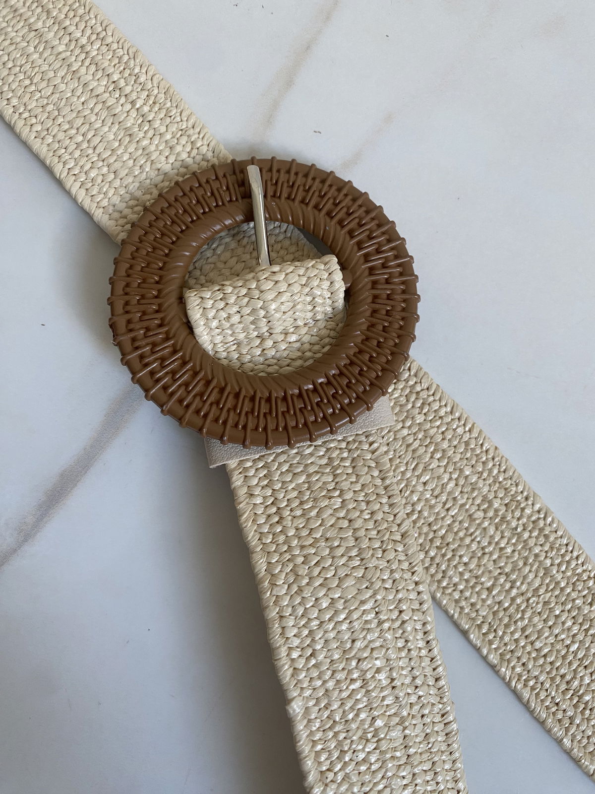 CINTURÓN YUTE BLANCO con hebilla ámbar