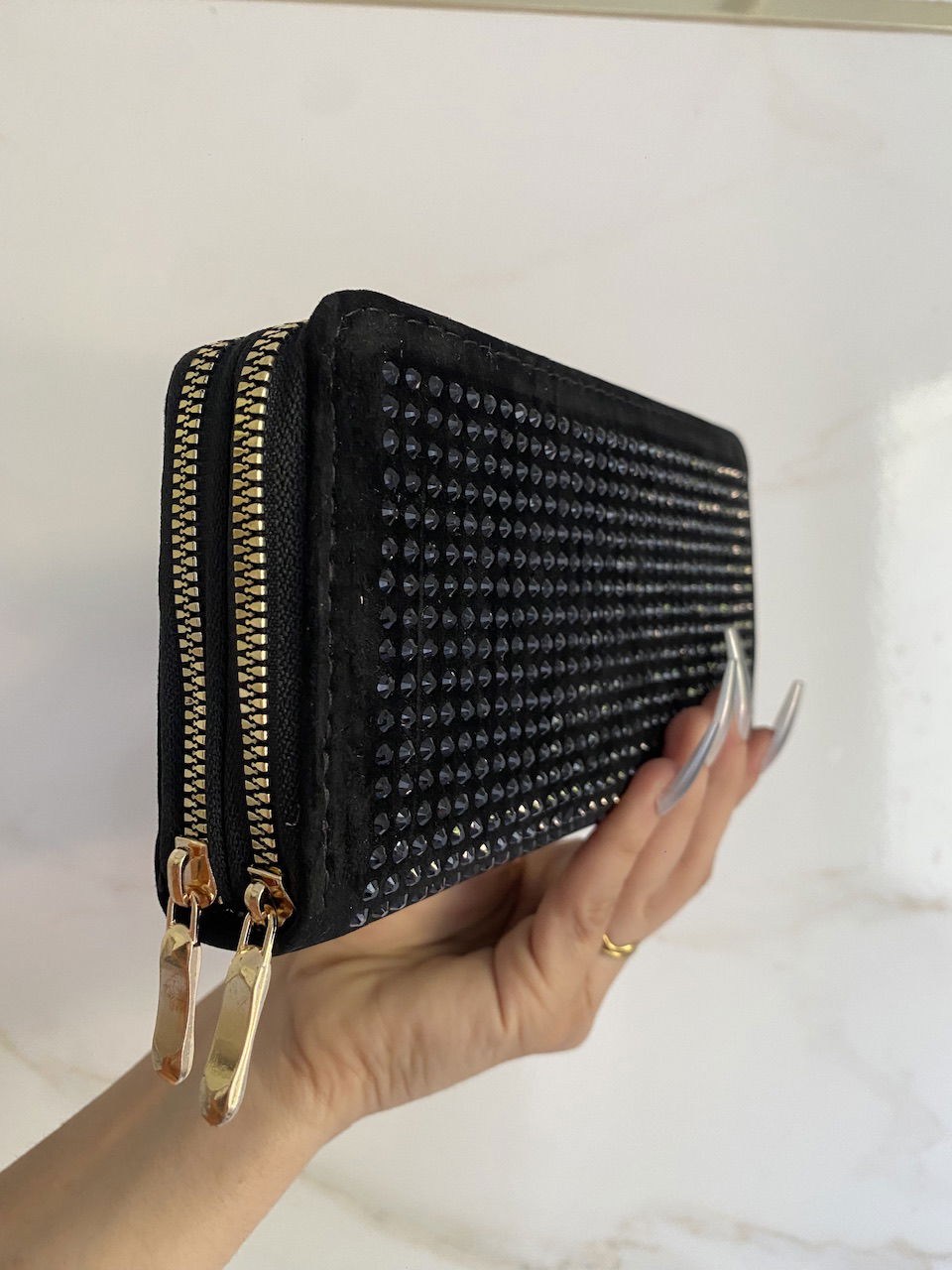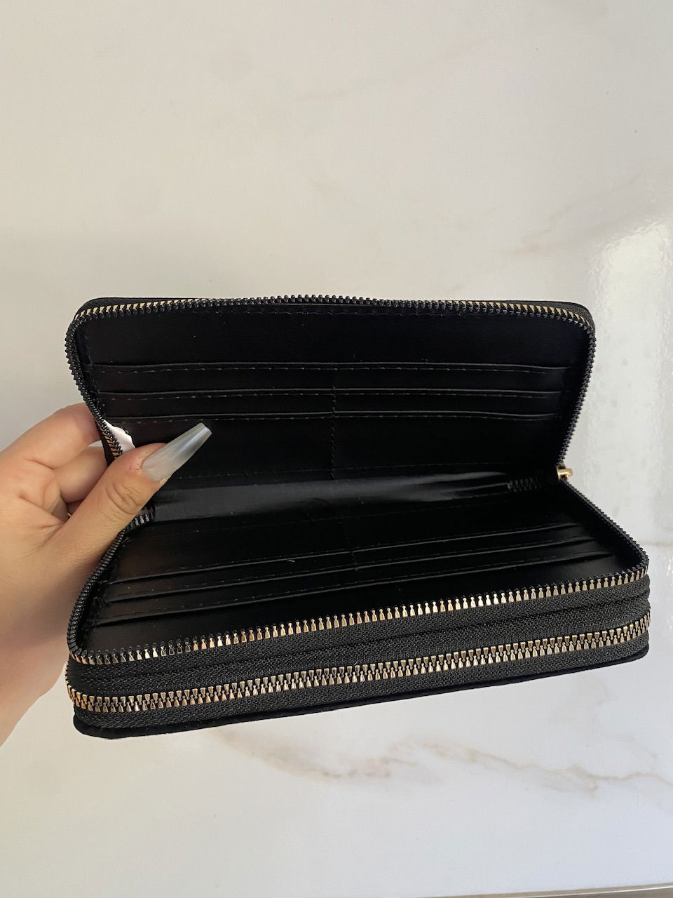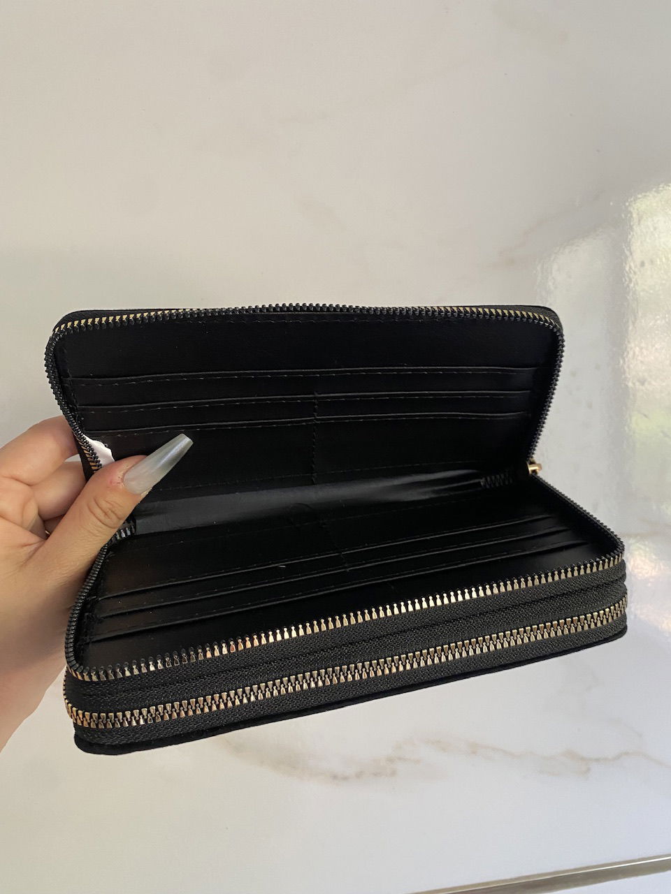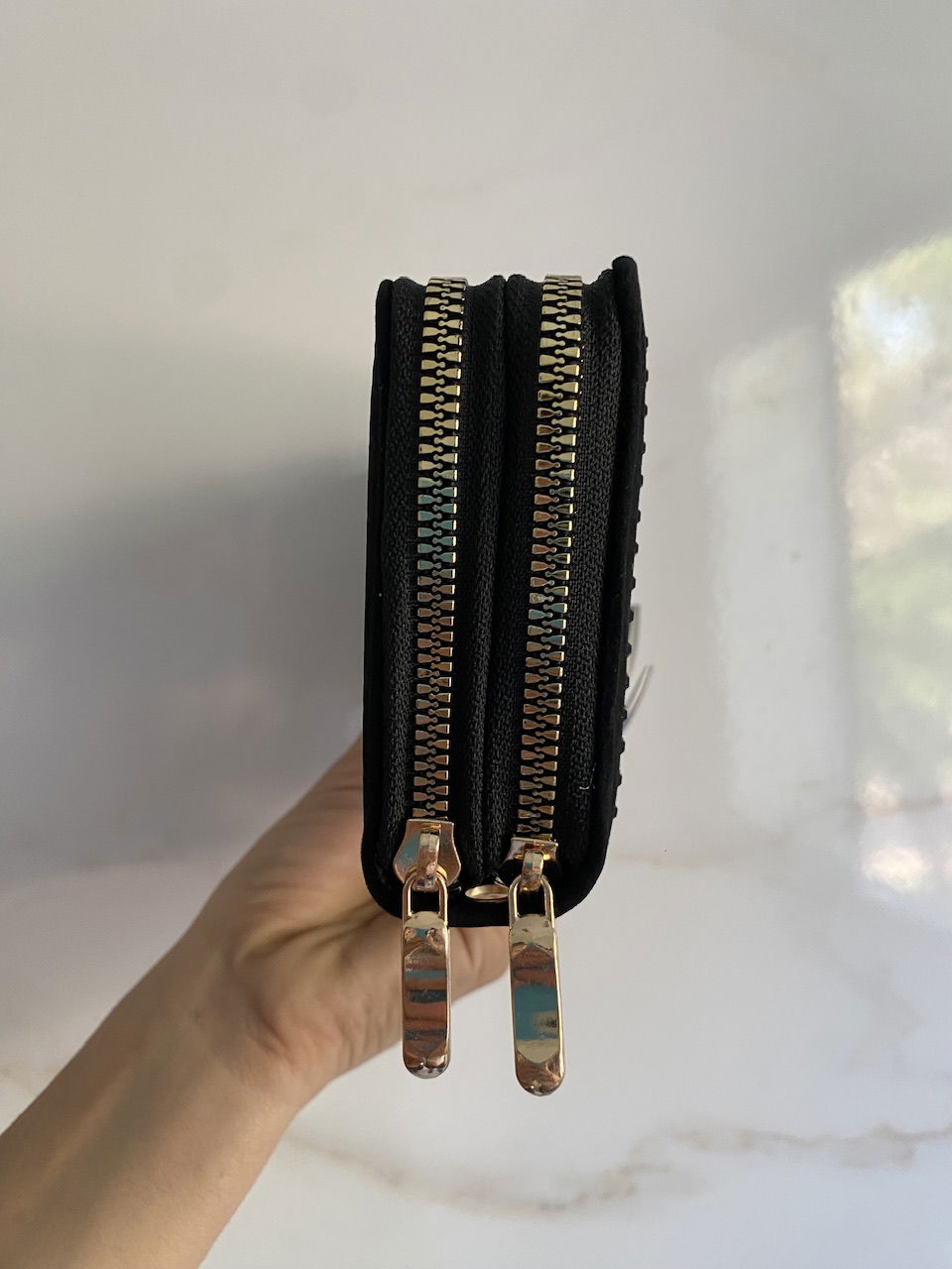 Billetera doble cierre, con espacio para guardar tarjetas, billetes y monedas