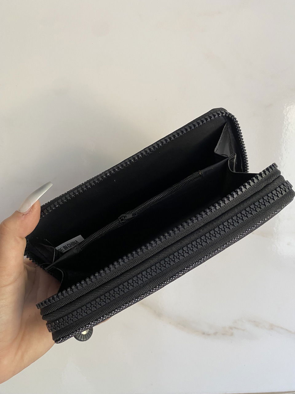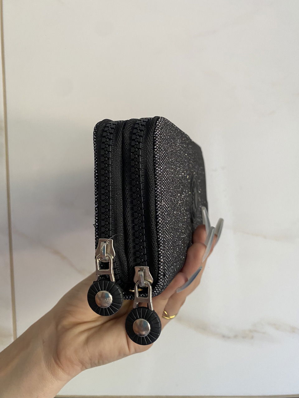 Billetera doble cierre, con espacio para guardar tarjetas, billetes y monedas