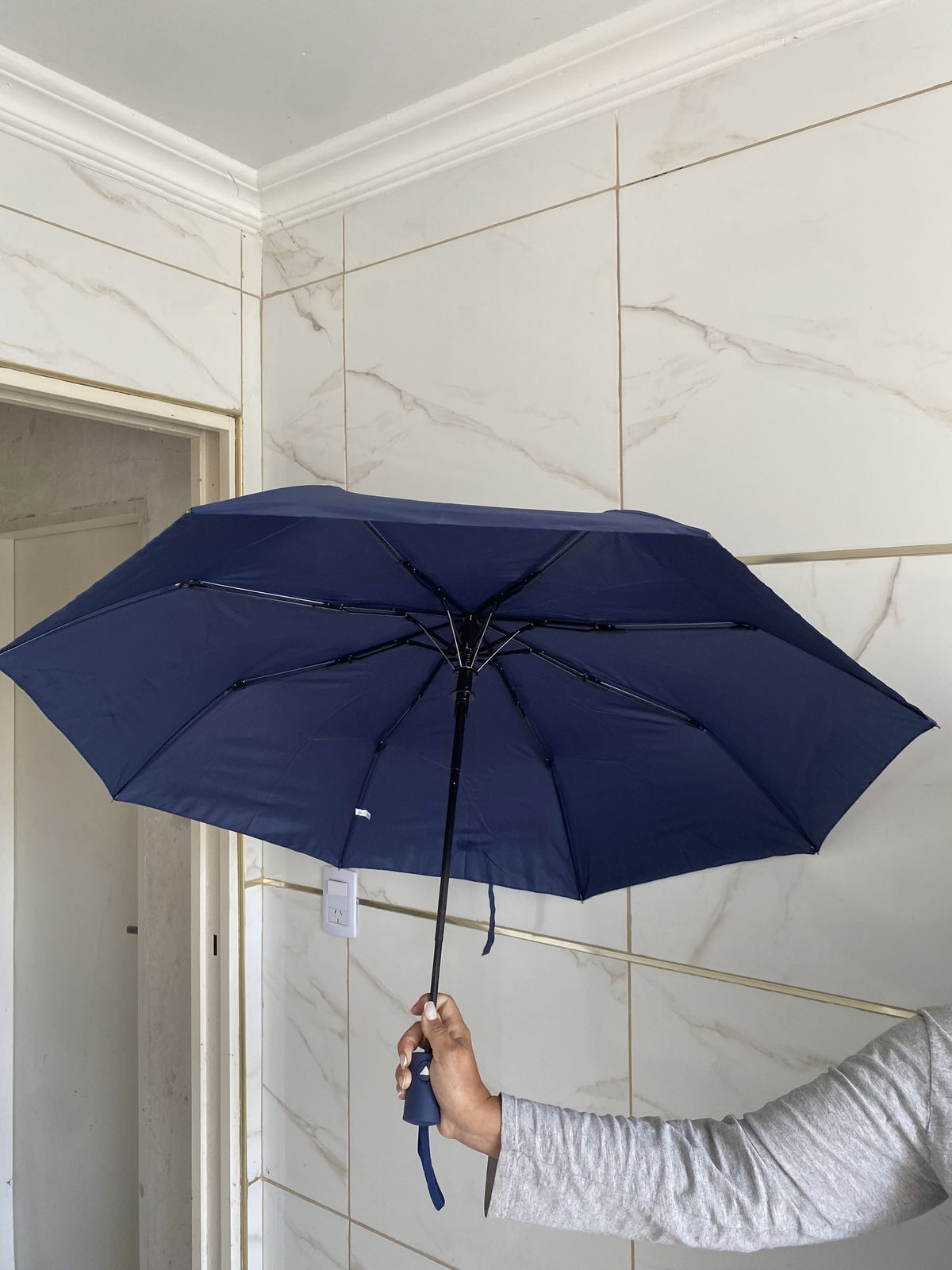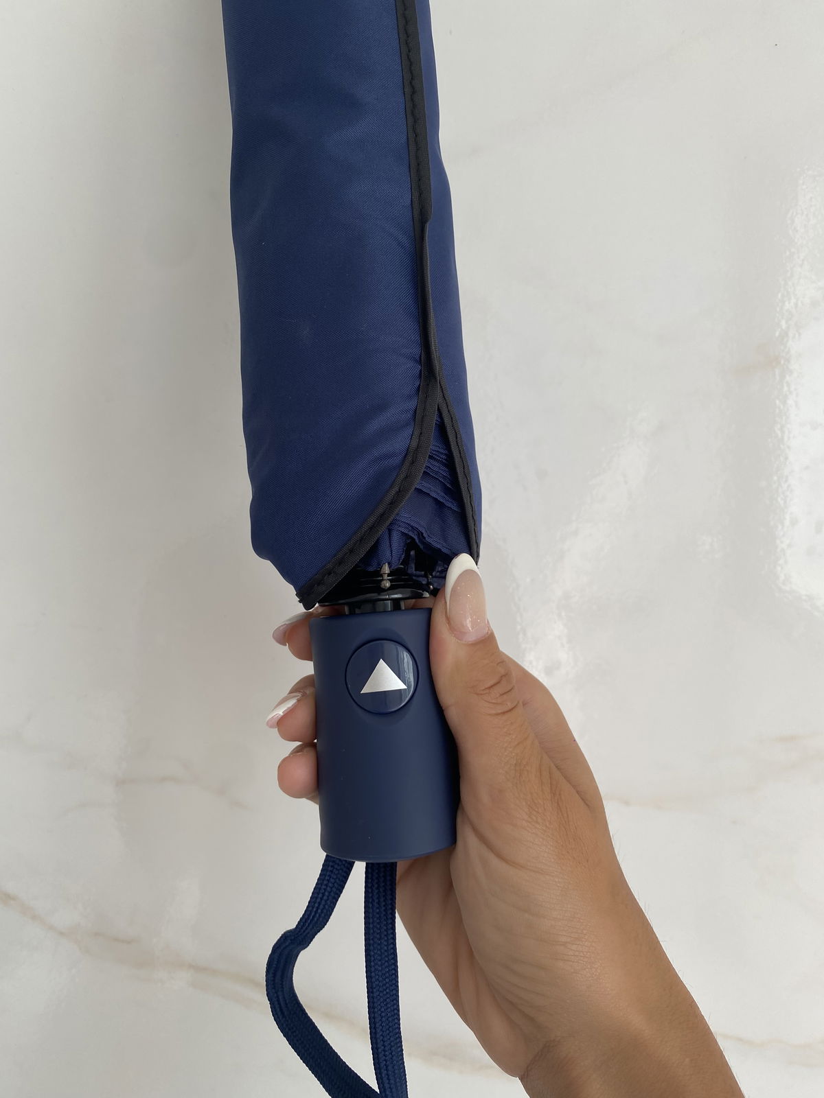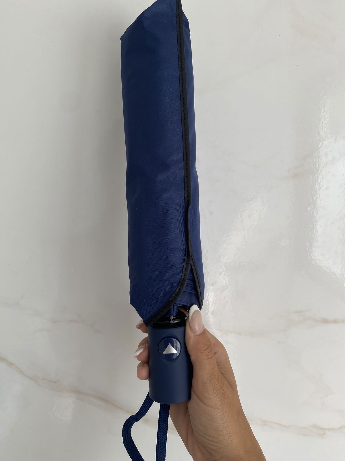Paraguas reforzados color azul con boton de apertura automático.
