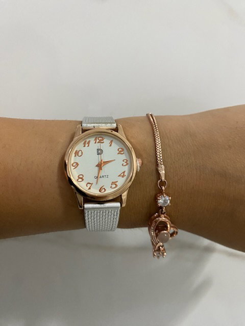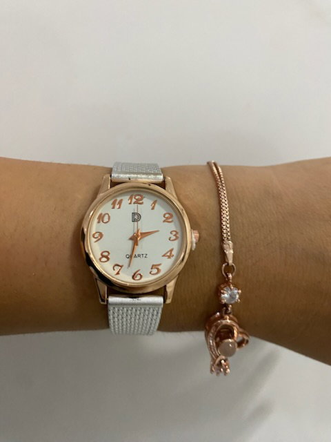 reloj analógico, malla de silicona maleable pintada en PLATA metalizado