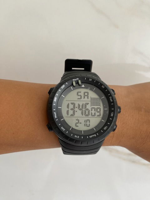 incluye fecha , hora, alarma, cronómetro y luz.