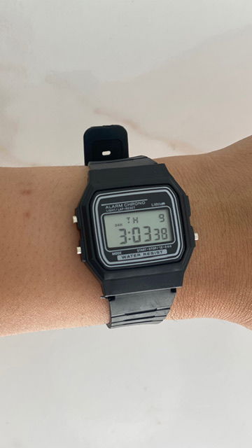 Reloj digital plástico , malla regulable.