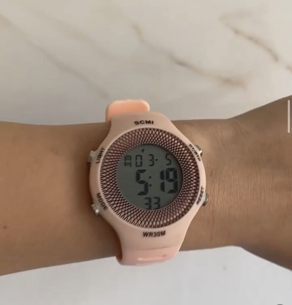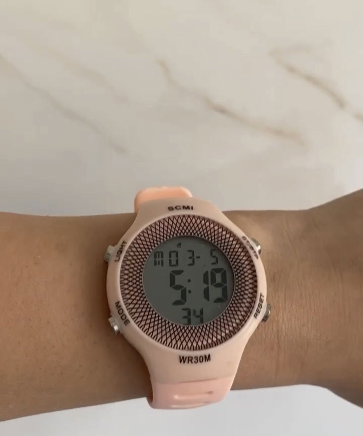 marca fecha hora, alarma y cronómetro.