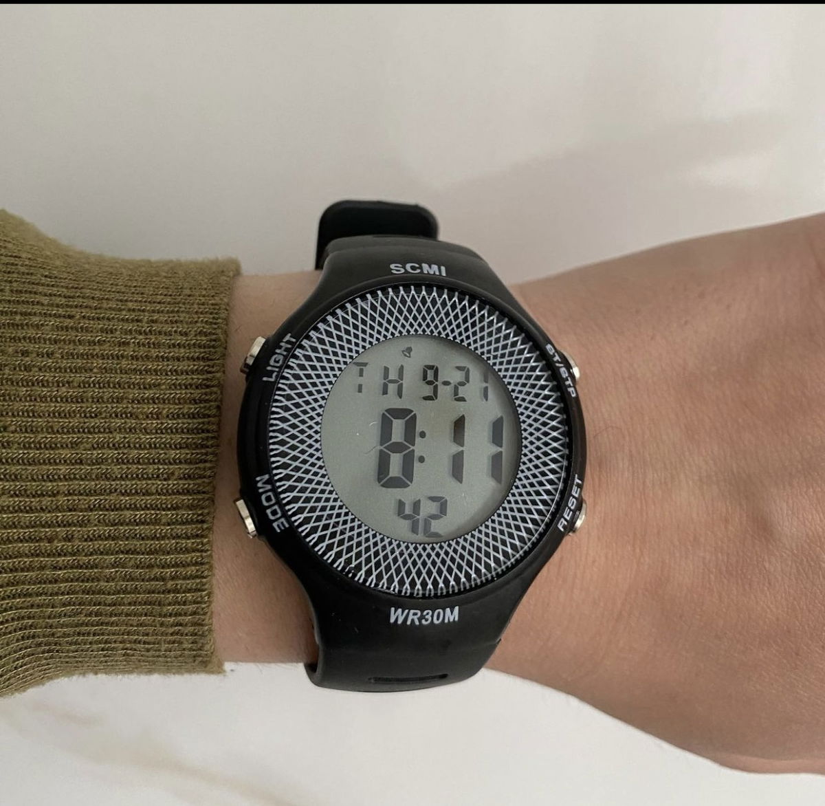marca fecha hora, alarma y cronómetro.